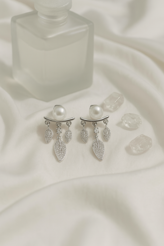 Korean White Glass Stone Jewelry Necklace Set | Rhodium Plated Crystal Bridal Jewelry with Earrings
