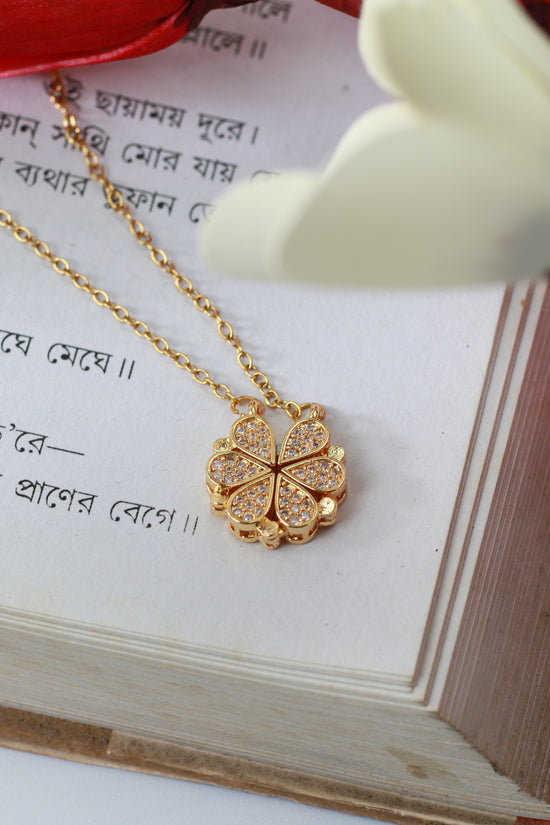 Floral Pendant Necklace – Double Flower Gold Plated Design with CZ Stones