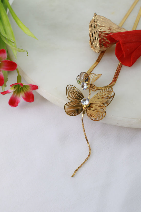 Layered Butterfly Pendant Necklace – Dual Chain Gold Plated Design