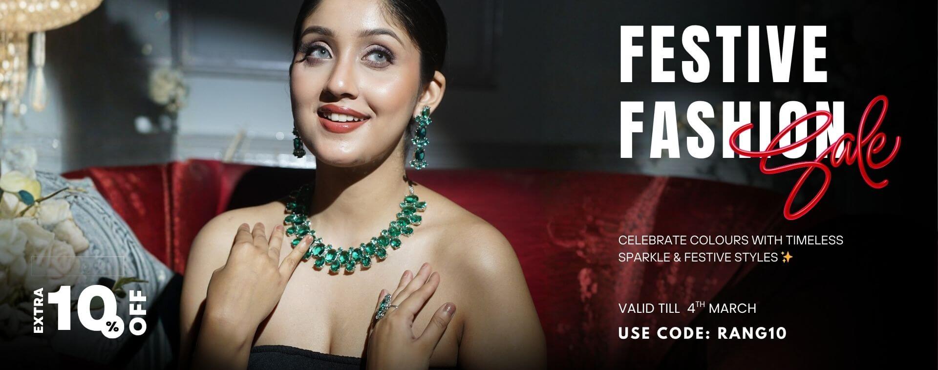 Emerald Double Layer Cushion Cut Necklace Set | Premium Party Jewellery
