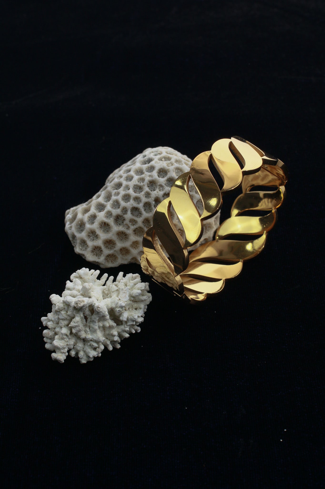 Wear alone as a signature piece or stack with thin bangles for a layered look. Pairs beautifully with warm tones, linen, and tailored eveningwear.