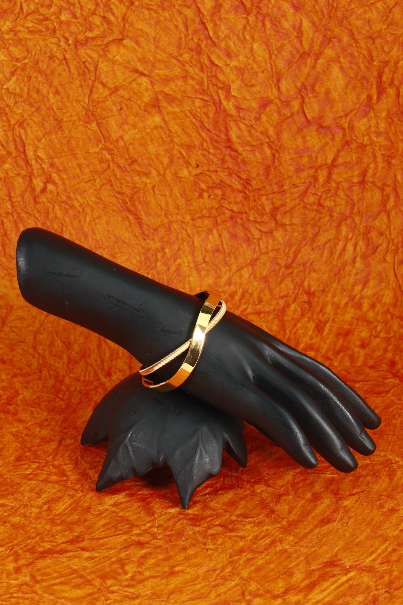 - Design: Dual-band cuff with one polished band and one textured twisted coil band