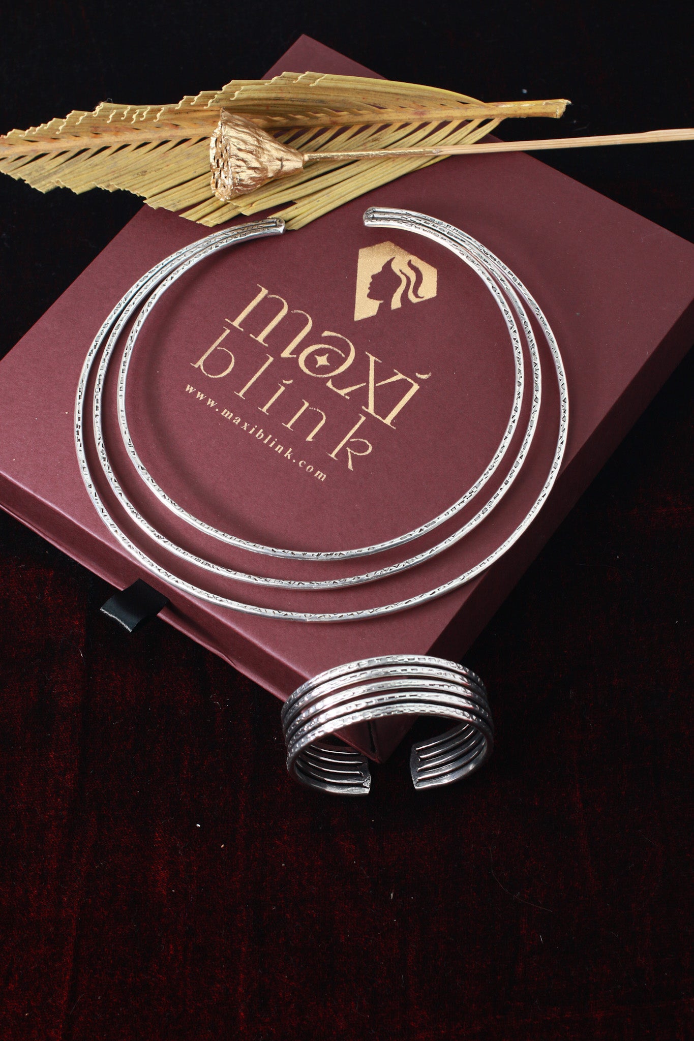 - Elegant German Silver oxidised necklace with matching adjustable bracelet.