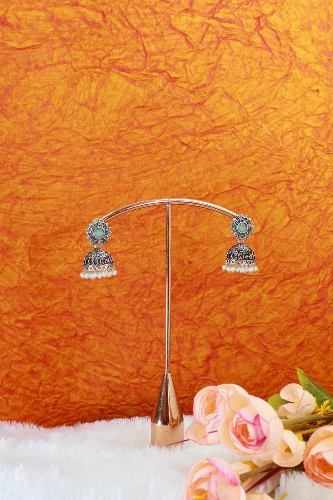 - Design: Classic Jhumka with Floral Top