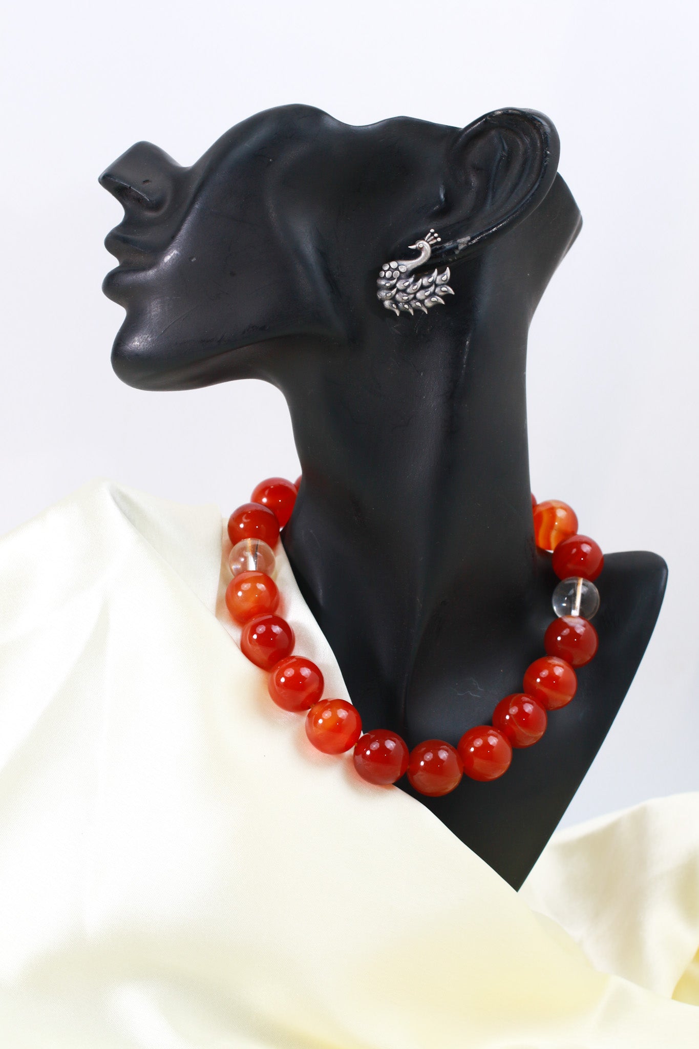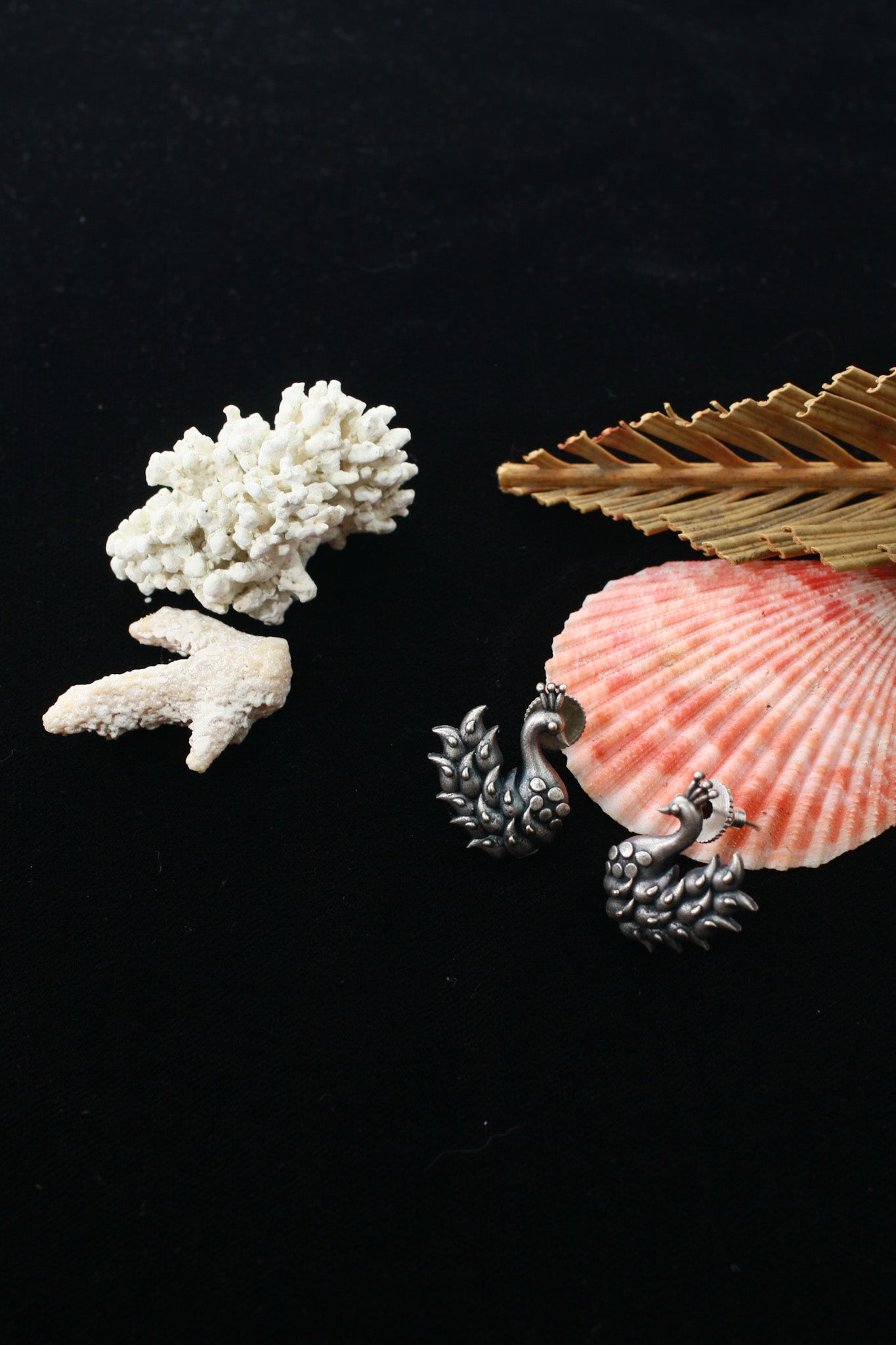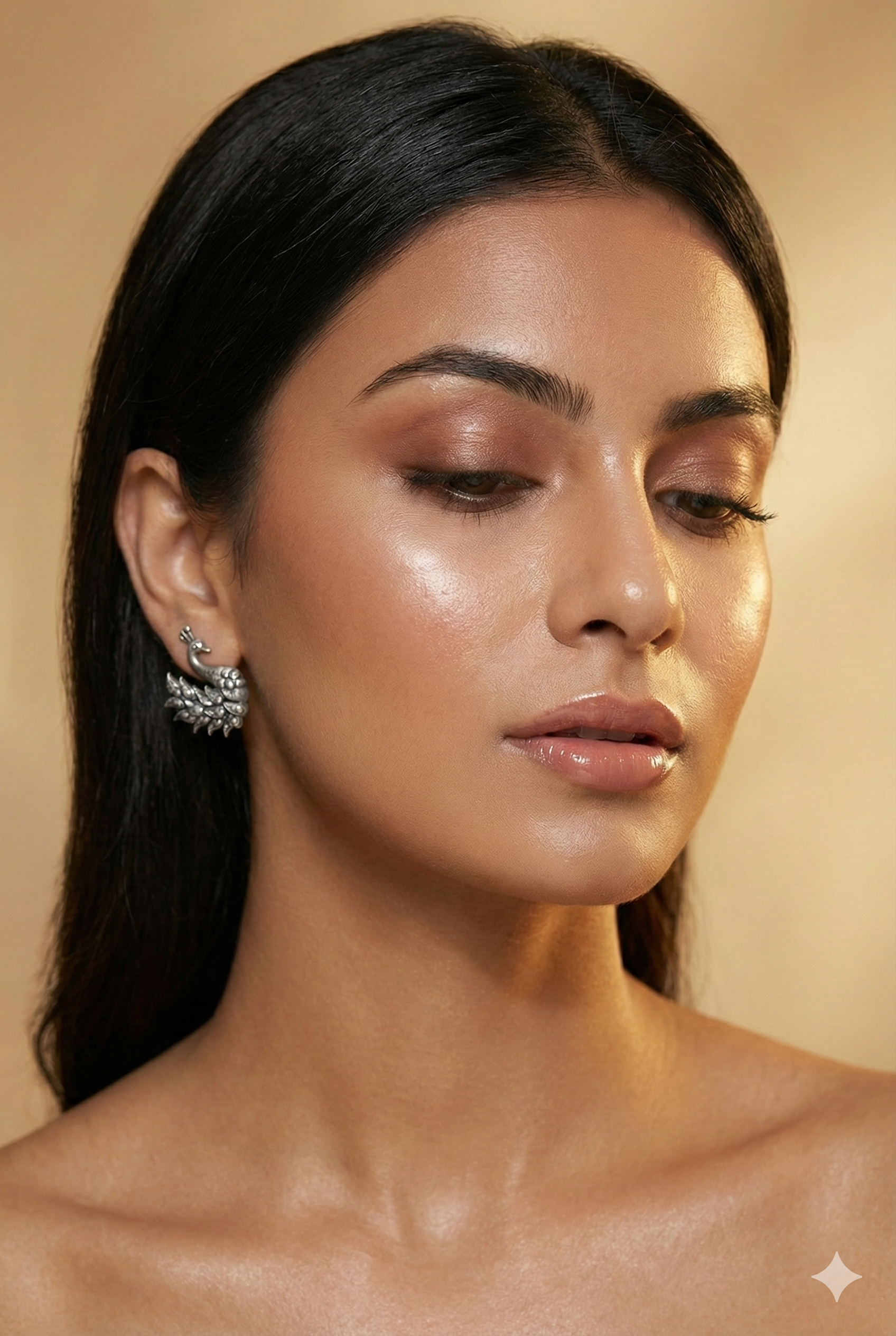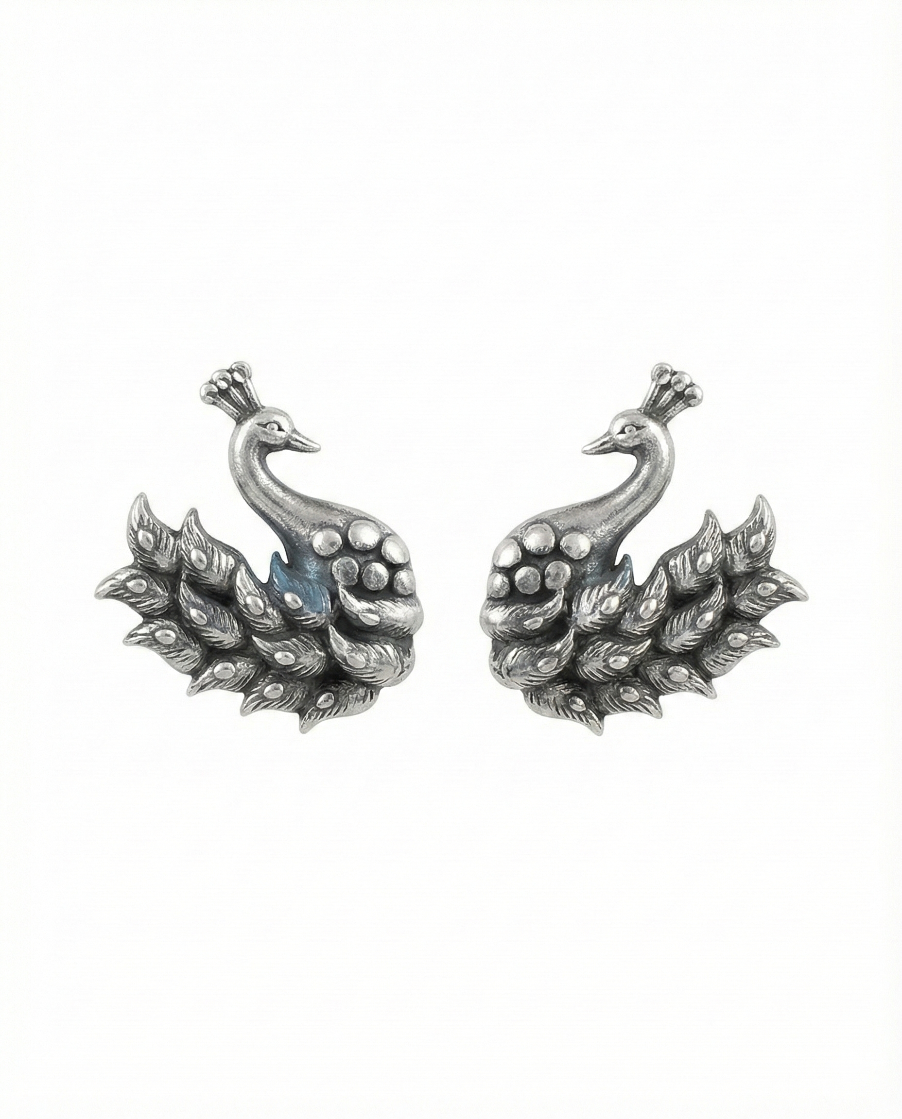 These Mini Peacock Oxidised Stud Earrings feature a beautifully carved peacock motif with embossed detailing. The oxidised German silver finish adds a timeless ethnic touch.