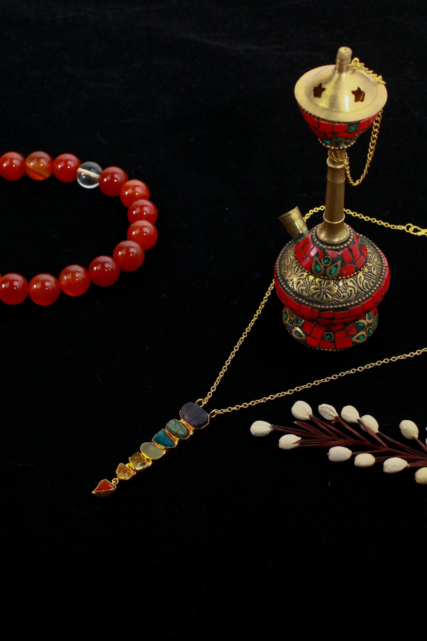 - Material: Natural gemstones set in gold‑plated brass